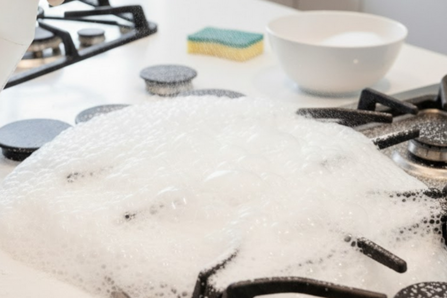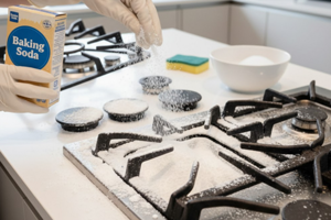 Gabungan kedua-dua bahan ini sangat berkesan untuk melonggarkan kotoran degil, menyerap bau, dan mengilatkan permukaan dapur gas tanpa merosakkan material.