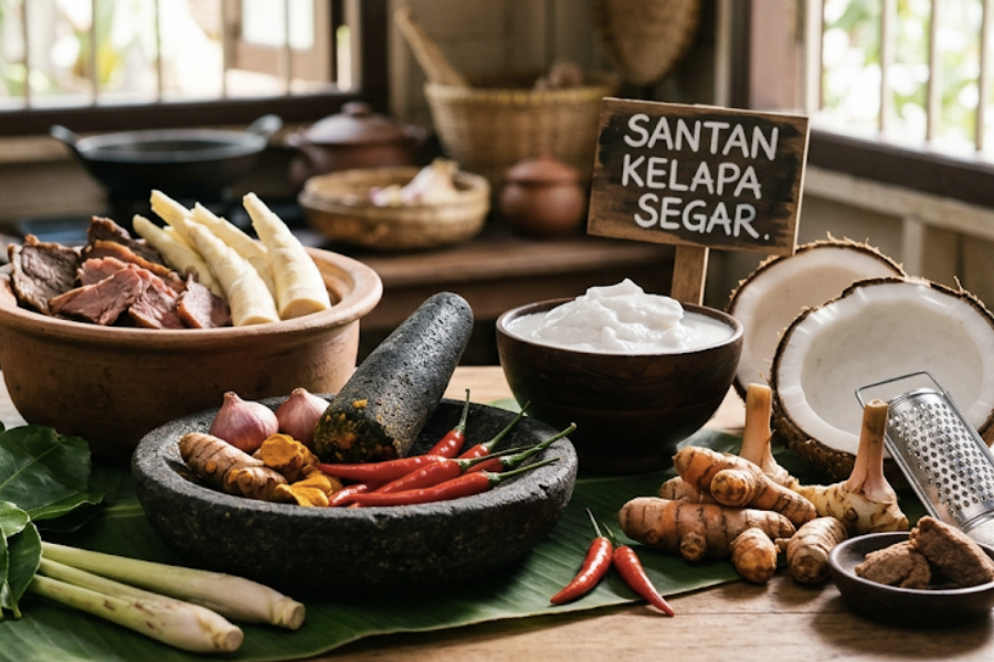 Selain santan, terdapat juga tip tambahan seperti memasukkan kentang atau sedikit kerisik bagi membantu memekatkan kuah.