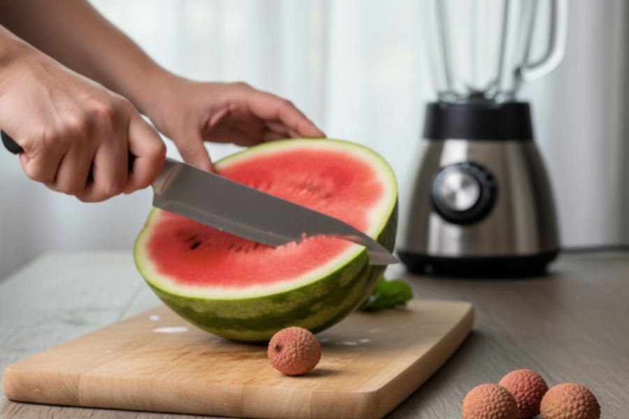 - Masukkan isi tembikai ke dalam pengisar.