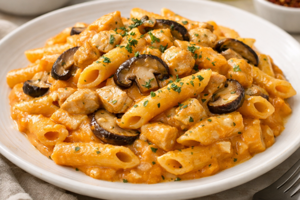 Digabungkan bersama sos berkrim dan pasta, ia menghasilkan hidangan seimbang yang sesuai untuk seisi keluarga.