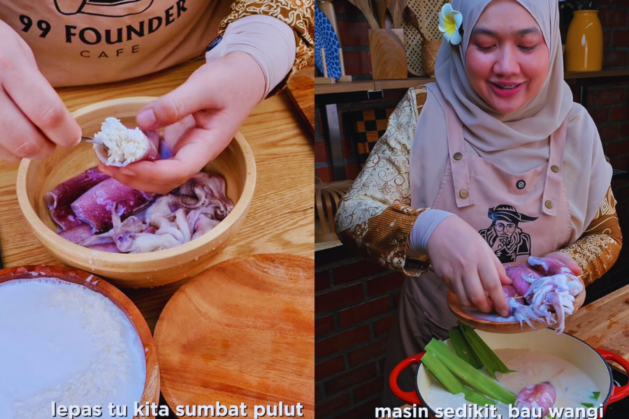 Angkat sotong dan dihidangkan bersama kuah santan yang lemak manis.