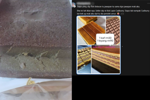 Cerita Haziq, ibunya telah menempah kek lapis Cadbury seperti yang diiklankan penjual, namun hasil diterima langsung tidak menyerupai gambaran promosi.