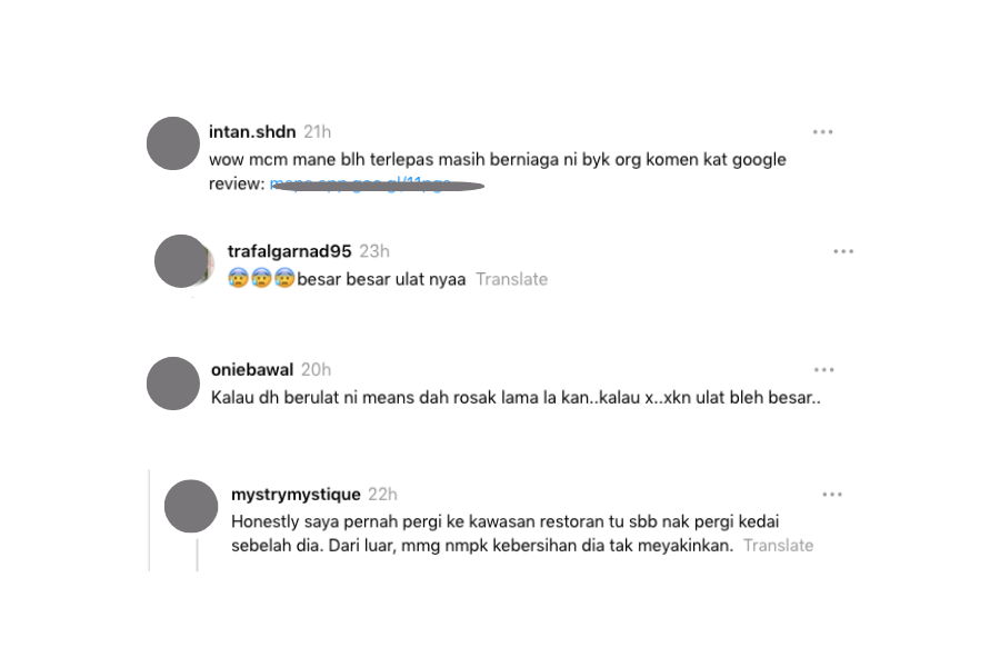 “Sejujurnya saya pernah pergi ke kawasan restoran tu sebab nak pergi kedai sebelah. Dari luar, memang nampak kebersihan tak meyakinkan.