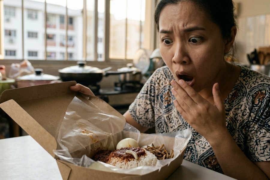 Beli nasi kukus, terbantut selera nampak 3 ulat 'jalan-jalan' dalam plastik lauk
