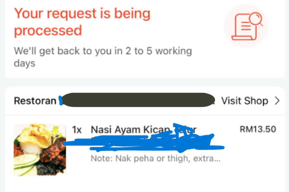Menerusi ruangan komen, wanita itu memberitahu dia tidak pernah pergi ke kedai berkenaan namun sudah dua kali membuat pesanan makanan secara dalam talian.