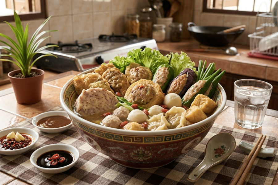 Menariknya, hidangan itu turut menggunakan sayur seperti kacang panjang, terung, cili dan peria disumbat dengan pes ikan atau daging sebelum dimasak sama ada direbus atau digoreng.