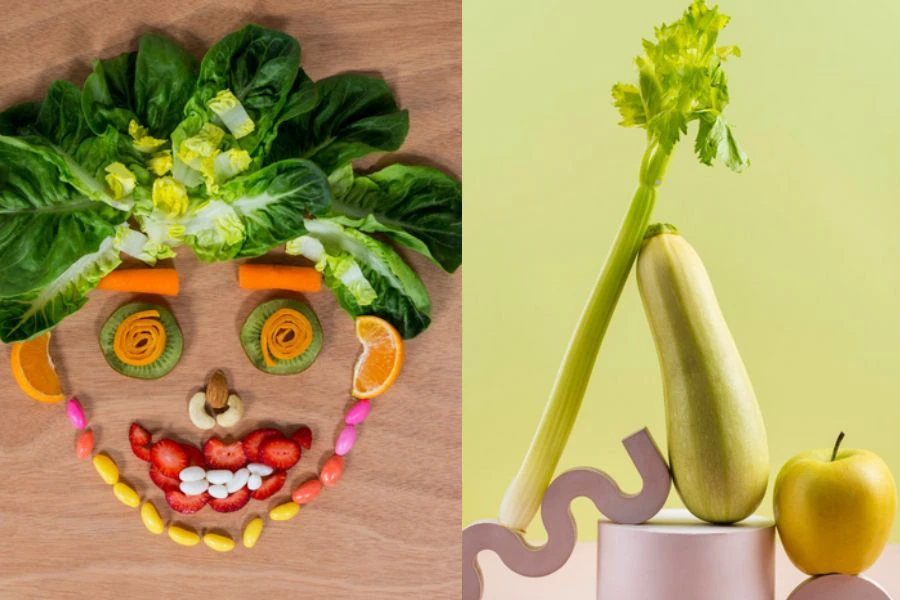 Menggunakan bahan semula jadi seperti buah-buahan dan sayur-sayuran boleh menjadi hidangan sesuai ketika siang untuk kanak-kanak.