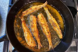 Terus goreng terung dalam minyak panas, pastikan terong digoreng hingga masak dengan membalikkan supaya masak secara sekata.