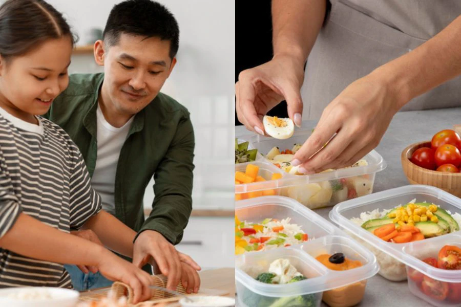 Bakar sayur, rebus ayam, masak nasi atau pasta dalam kuantiti besar. Bila bahan asas dah siap, mudah buat wrap, sup atau nasi goreng cepat.