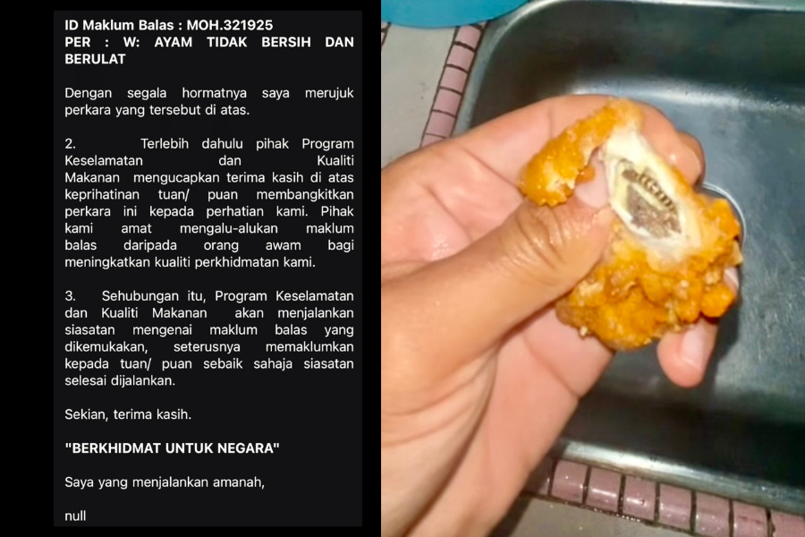 Ayam goreng beli di bazar ada ulat tepung, lelaki lega KKM pantas buat kerja