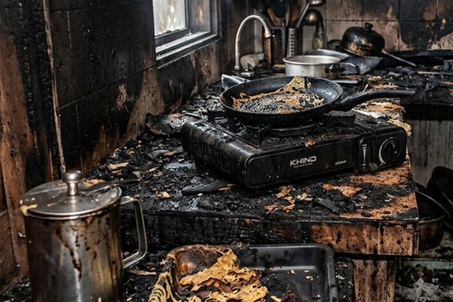 Dapur mudah alih tiba-tiba meletup, sekeluarga beraya di hospital