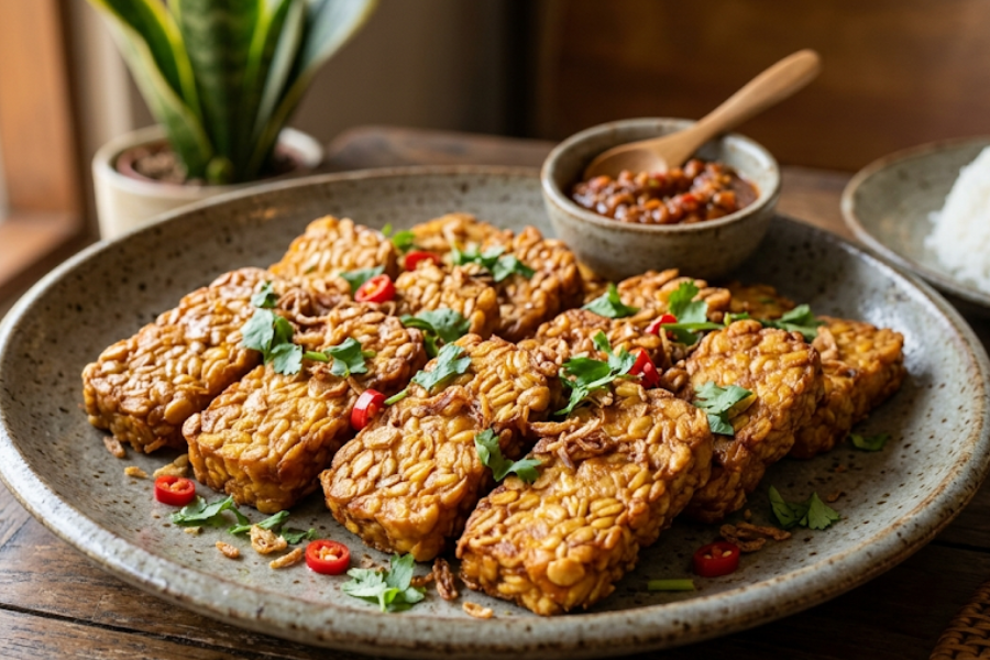 Tempe kaya dengan protein, serat, kalsium, serta zat besi.
