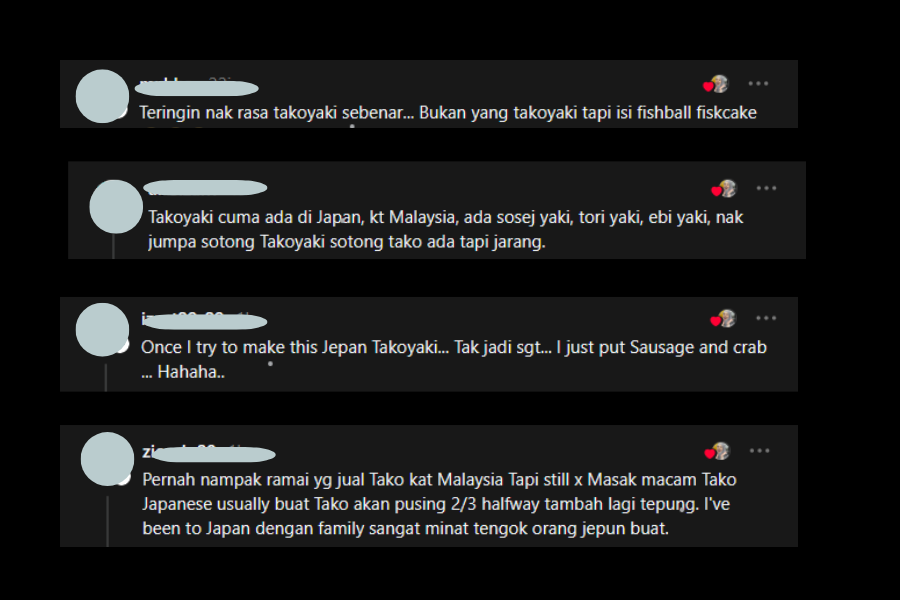 "Teringin nak rasa takoyaki sebenar. Bukan yang takoyaki tapi isi fishball fiskcake," antara komen netizen.